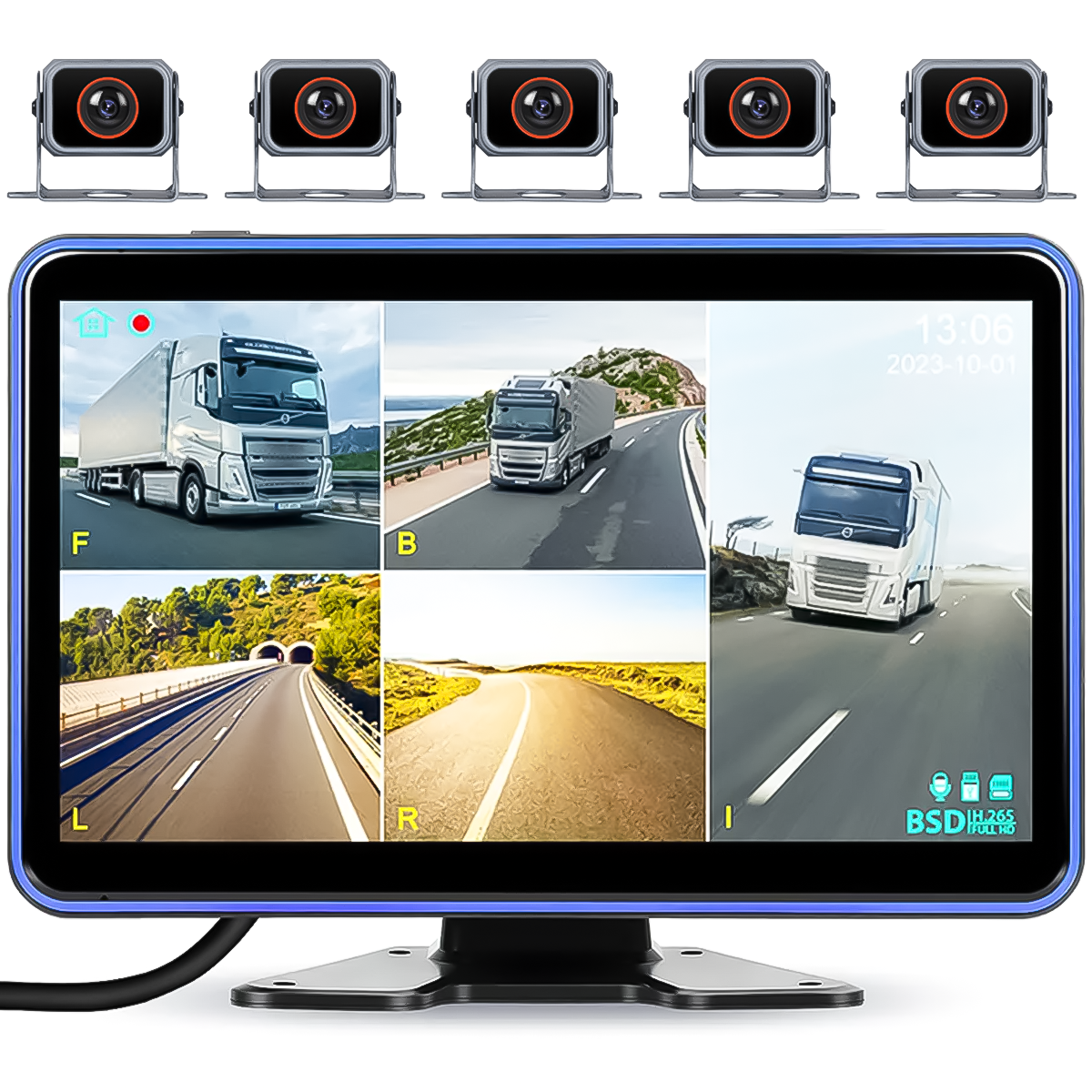 Паркувальний комплекс для вантажних автомобілів з круговим оглядом Podofo A3696, монітор 10.1" дюймів + 5 камер заднього виду, з